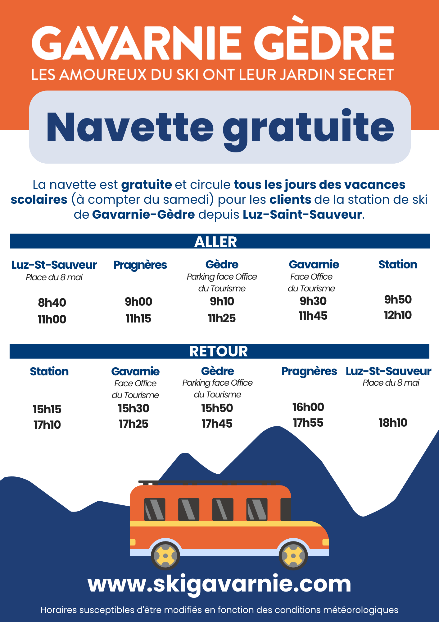 Profitez de notre service de navette gratuite pour accéder à la station sans contrainte de stationnement. Ce service est disponible pendant les vacances scolaires de Noël et d'hiver.