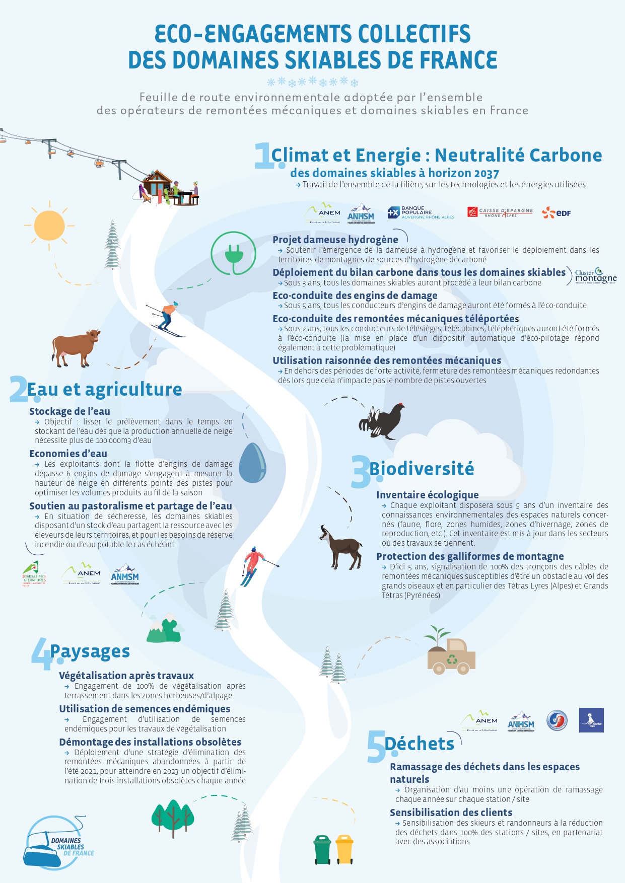Hace 5 años, las estaciones de esquí de Francia (DSF) y los operadores de remontes mecánicos adoptaron una hoja de ruta medioambiental con el objetivo de lograr la transición ecológica de los territorios.