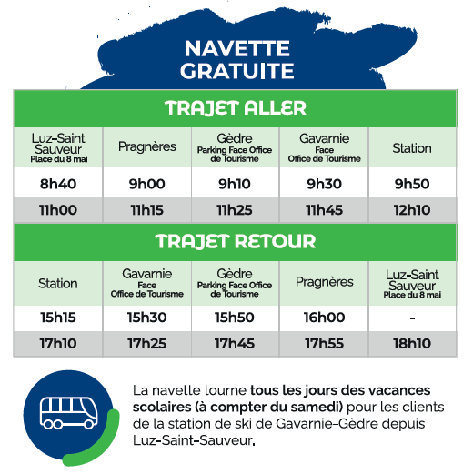 Profitez de notre service de navette gratuite pour accéder à la station sans contrainte de stationnement. Ce service est disponible pendant les vacances scolaires de Noël et d'hiver, uniquement pour les clients de la station.